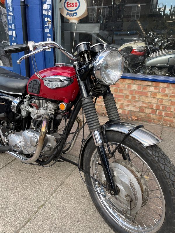 This export T120R is a matching numbers bike back from the states years ago, we are selling this bike on behalf of one of our customers that is thinning his collection down. The overall condition of the bike is tidy and a nice ridable bike. The nice thing about the 1968 T120 it was the first year of the twin leading shoe front brake and the only year of the large alloy wheel dish. Being an export model it’s fitted with the 2.5 gallon slim petrol tank the USA bars and stainless mudguards back and front also it has the correct export rear light and the reflectors under the petrol tank.