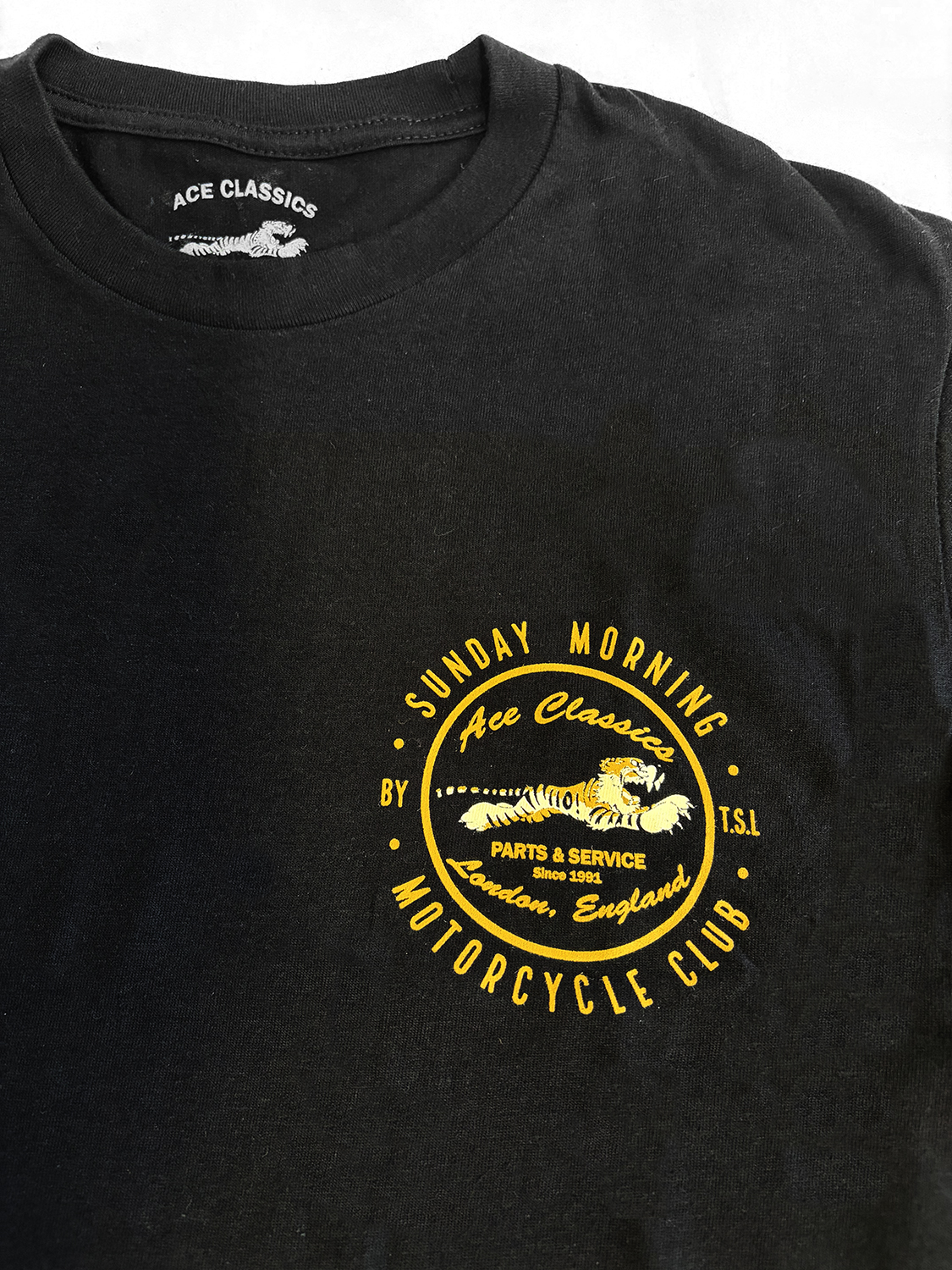This collaboration tee between Ace Classics London and The Sunday Morning Club Japan, comes in classic black and features the iconic leaping tiger in a new collaboration logo.