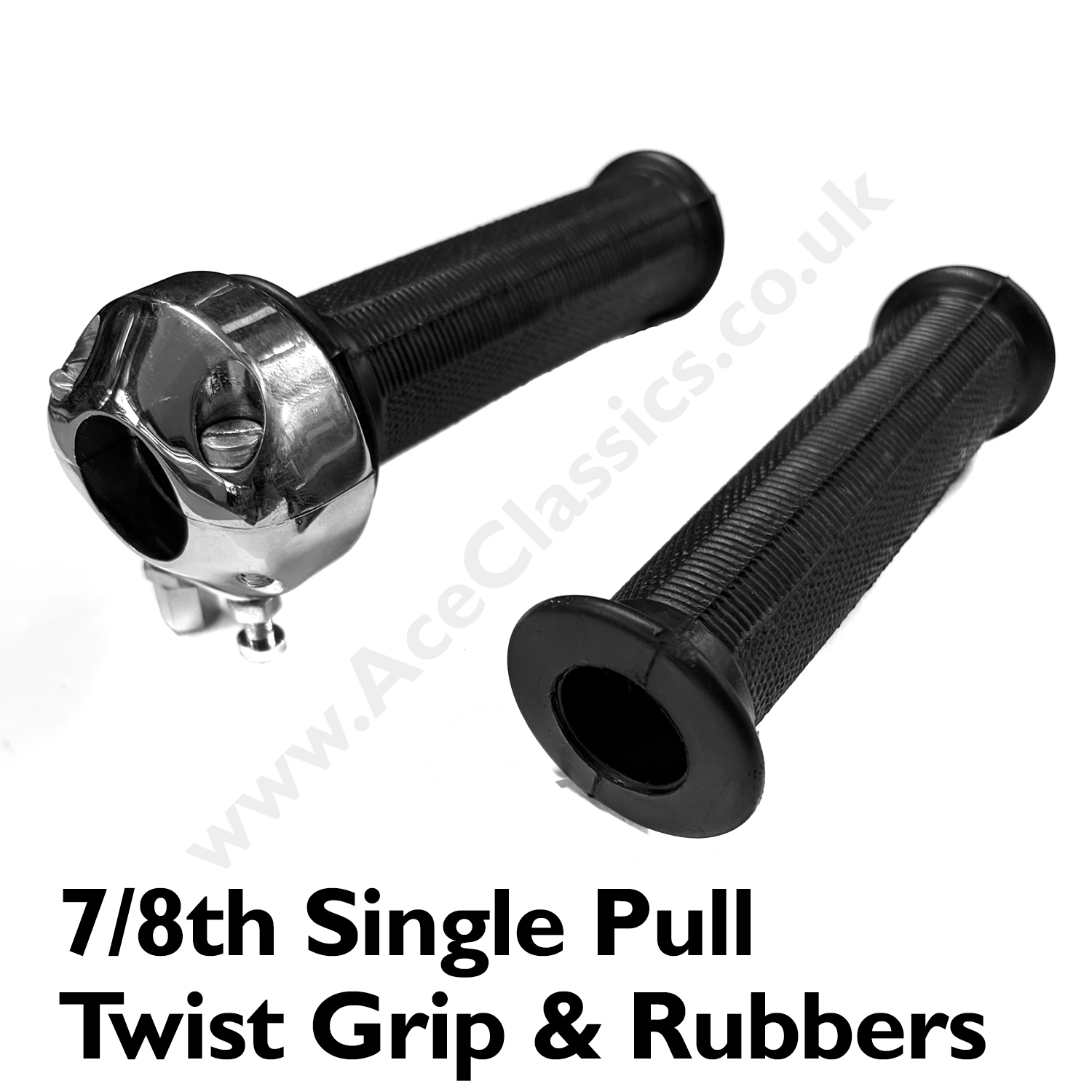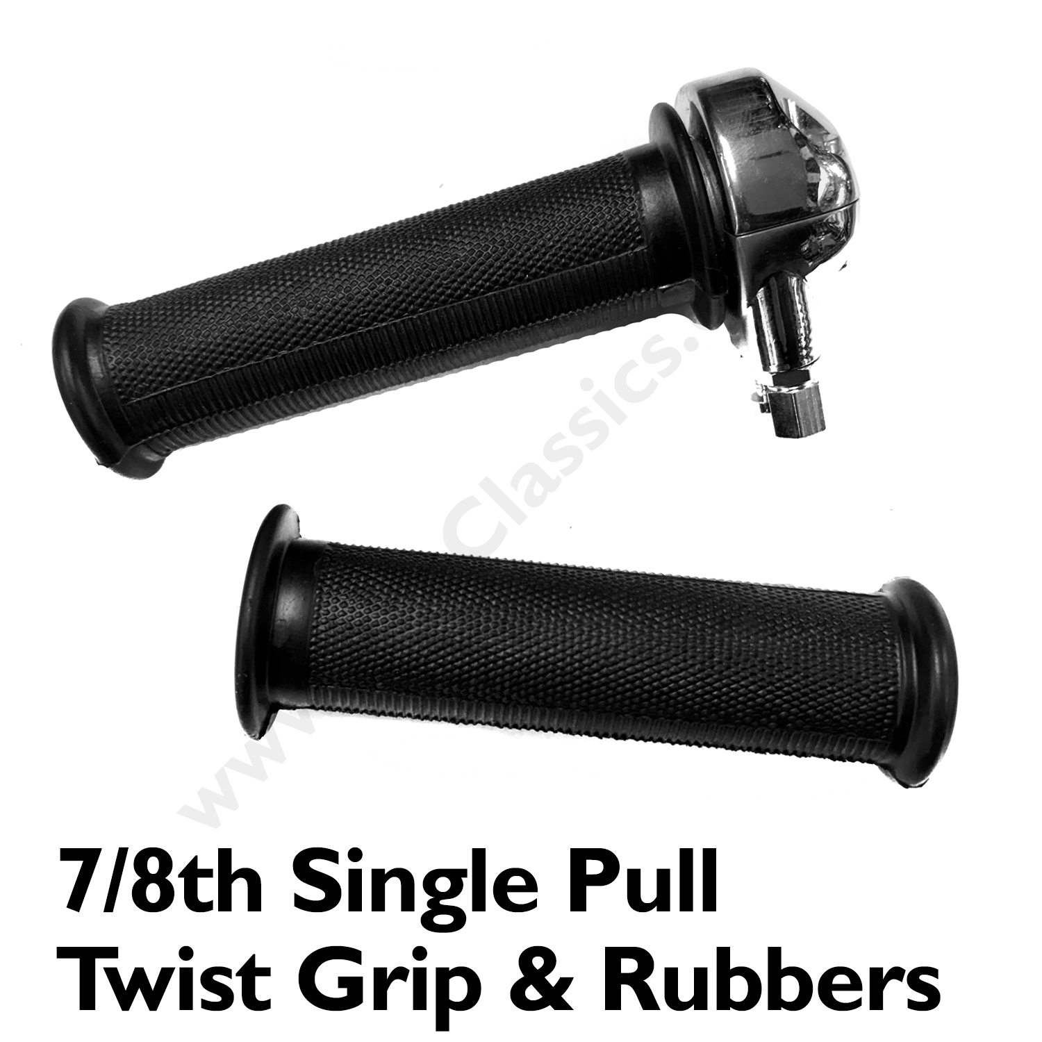 This twist grip comes complete with a pair of Amal style handlebar rubbers.