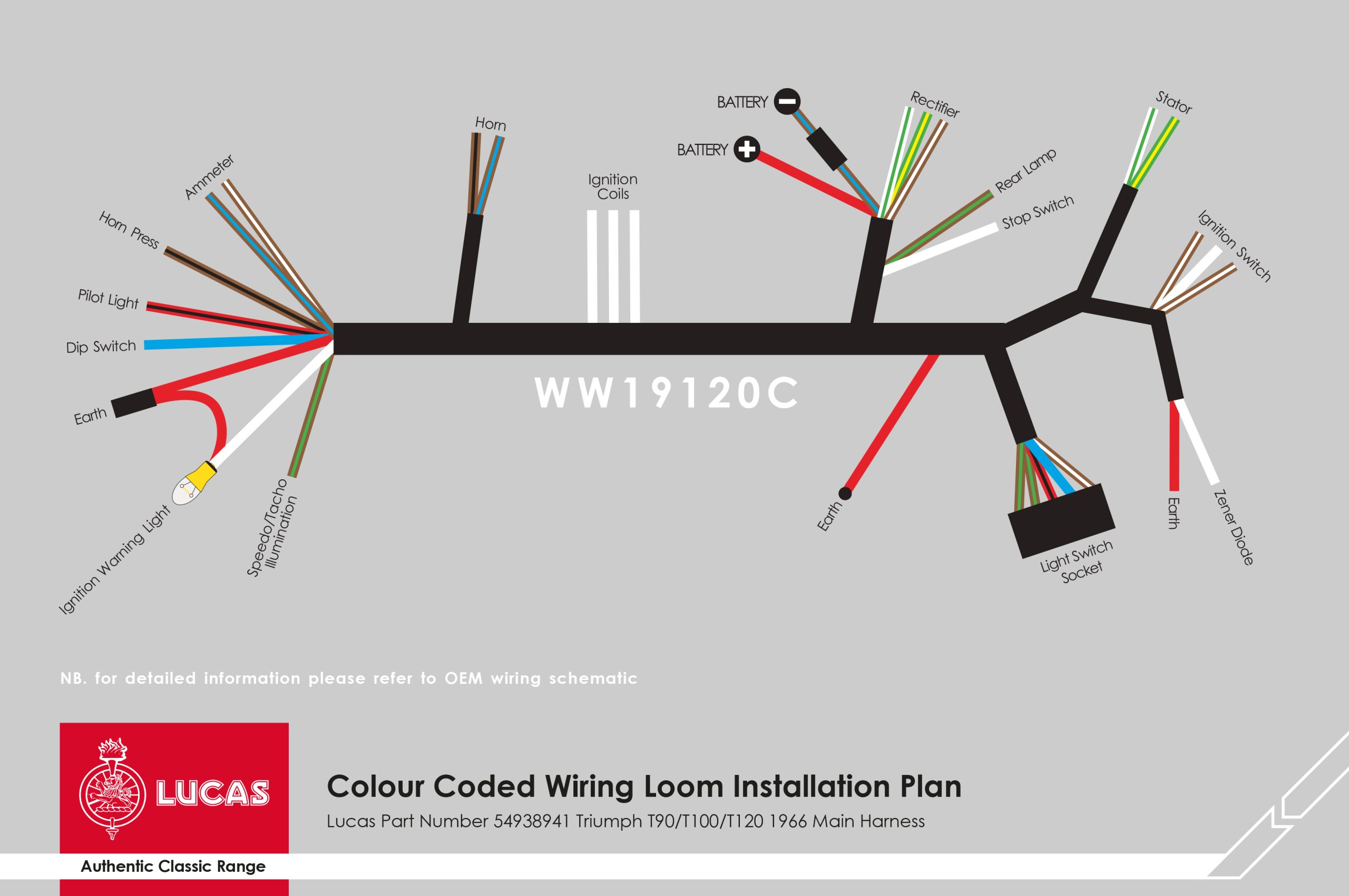 Triumph Lucas Wiring Harness 54938941 T90/T100/T120 (1966)