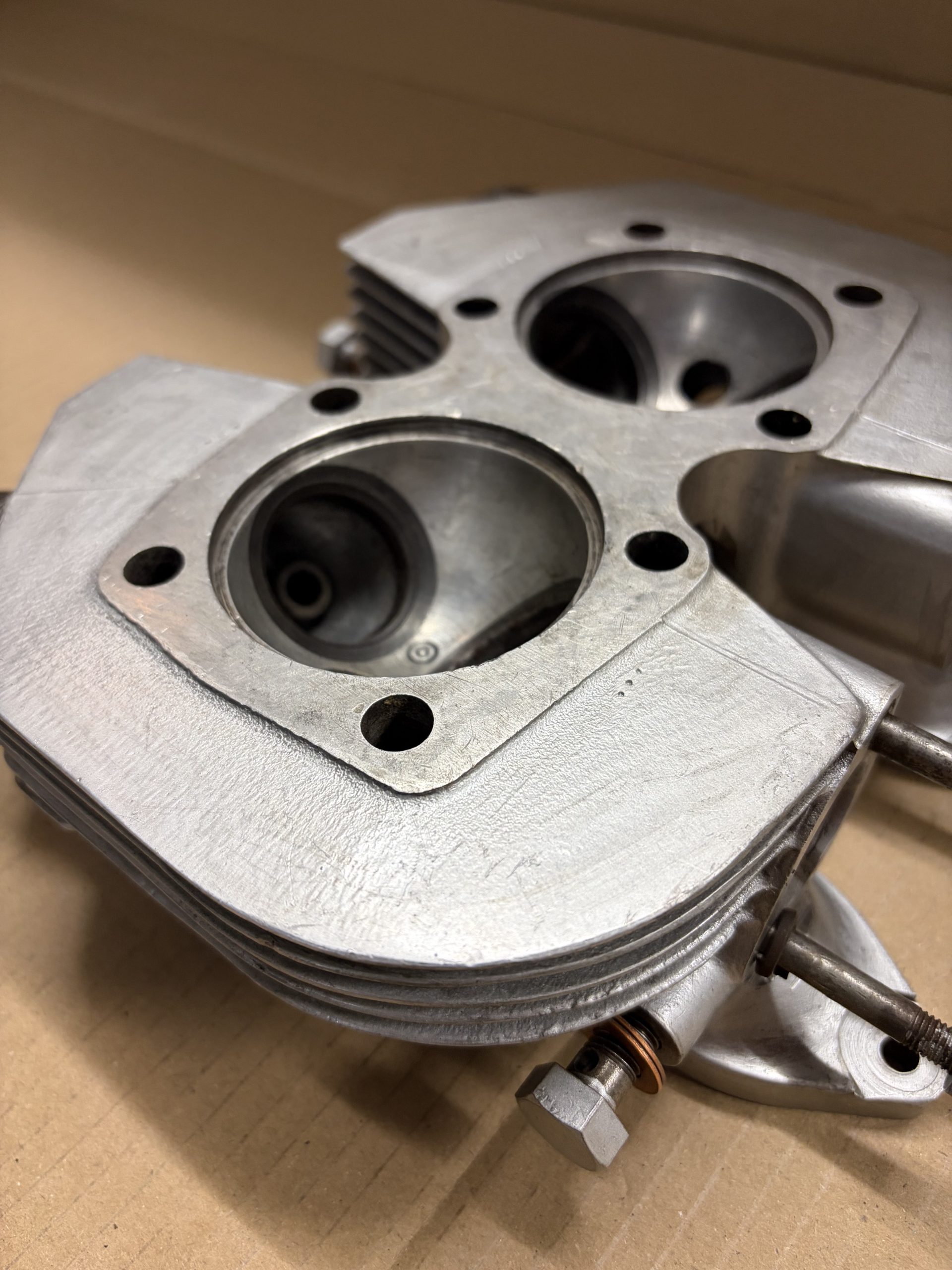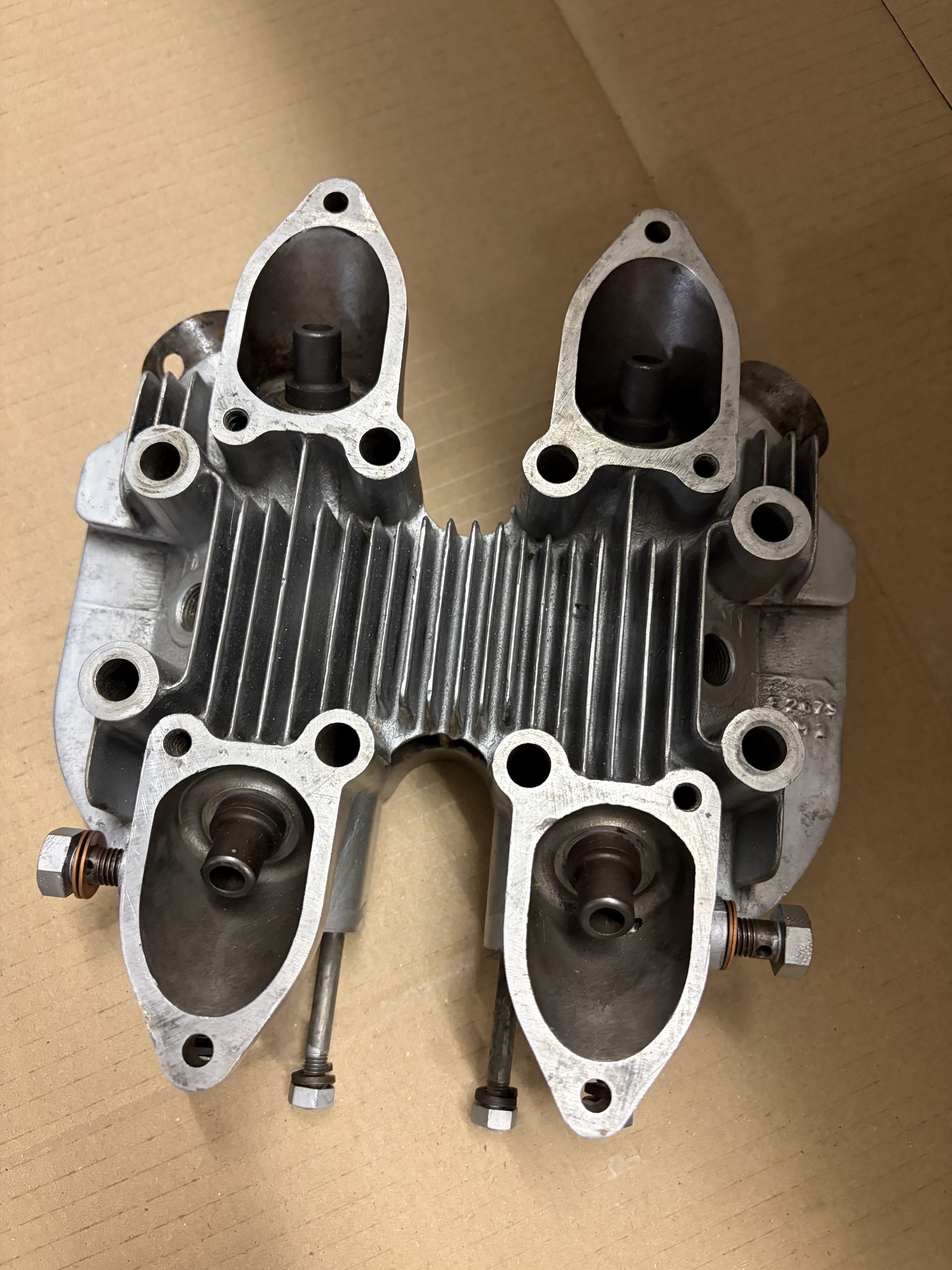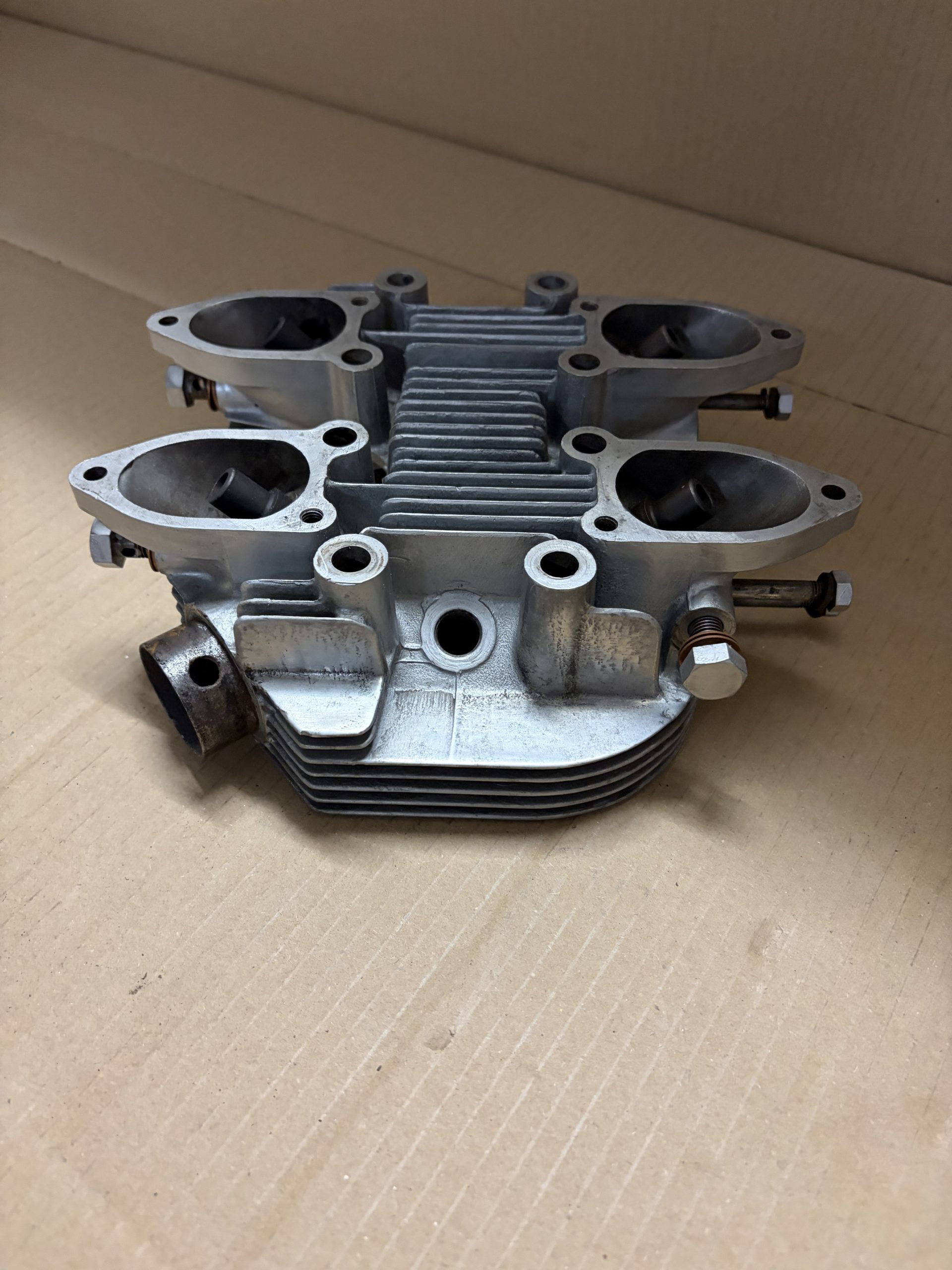 This is a very nice head with all fins intact. The valve seats look good and there is plenty of surface left on the underside.
